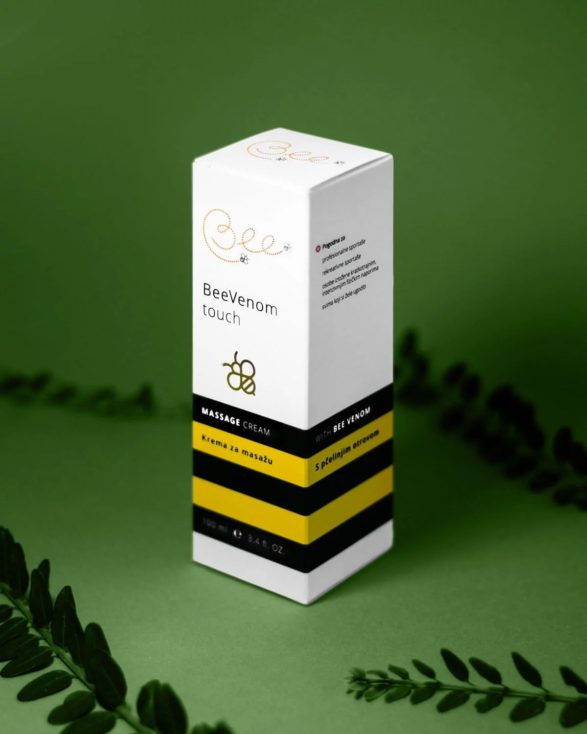 Pčelinji otrov u BeeVenom Touch kremi za masažu donosi brojne pogodnosti. Njegova protuupalna svojstva smanjuju upalu, pružajući olakšanje kod bolnih i napetih mišića, dok istovremeno potiče prokrvljenost kože i mišića, pomažući u njihovom bržem oporavku. Integracija pčelinjeg otrova s drugim prirodnim sastojcima čini ovu kremu idealnom za holistički tretman kože i mišića.